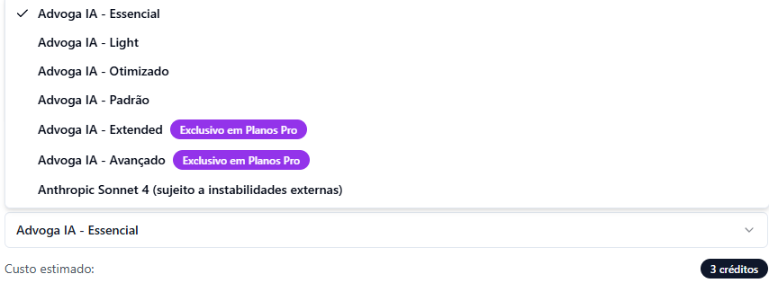 Nossa sugestão? Na sua próxima contestação ou petição inicial, experimente usar o Advoga IA – Padrão. Compare os resultados e veja como a combinação de alta qualidade e eficiência pode otimizar seu tempo e seus créditos.